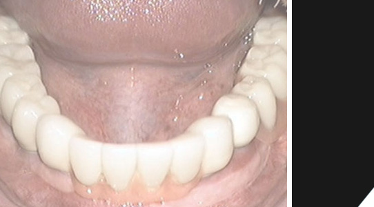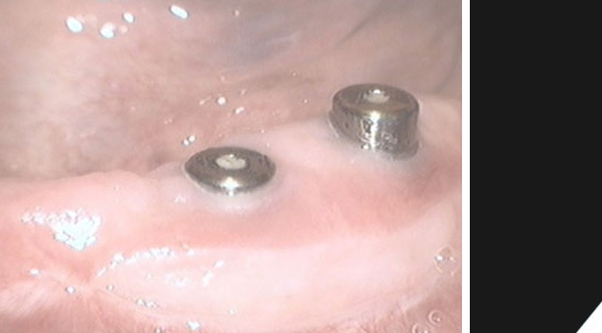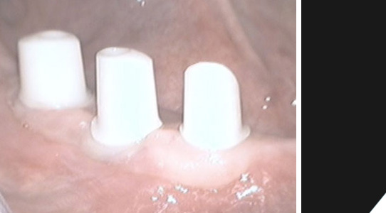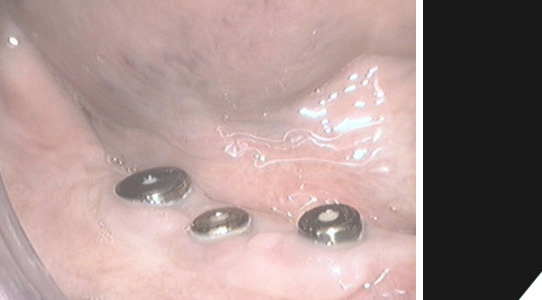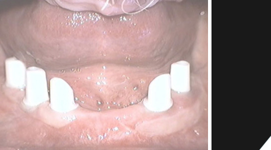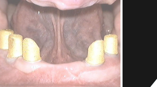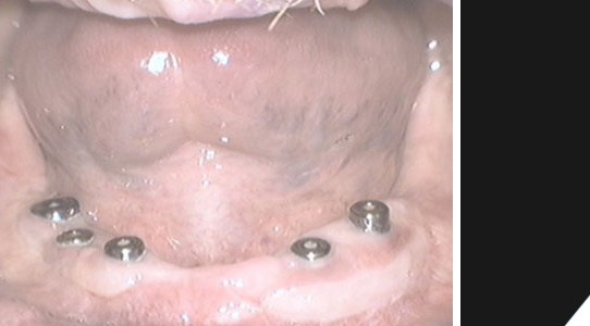 Hier noch ein weiterer Fall eines Patienten. Sie sehen einen zahnlosen Unterkiefer mit fünf Implantaten.