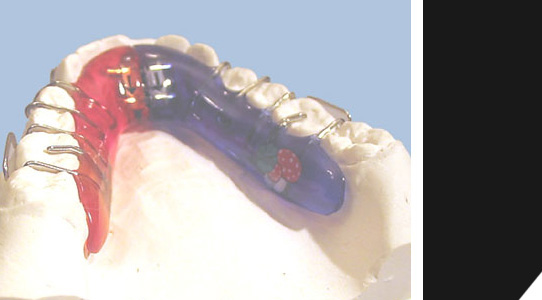 Aktivator, ein Gerät, das den Unterkiefer nach vorne holt, um das natürliche Kauverhalten zu normalisieren.